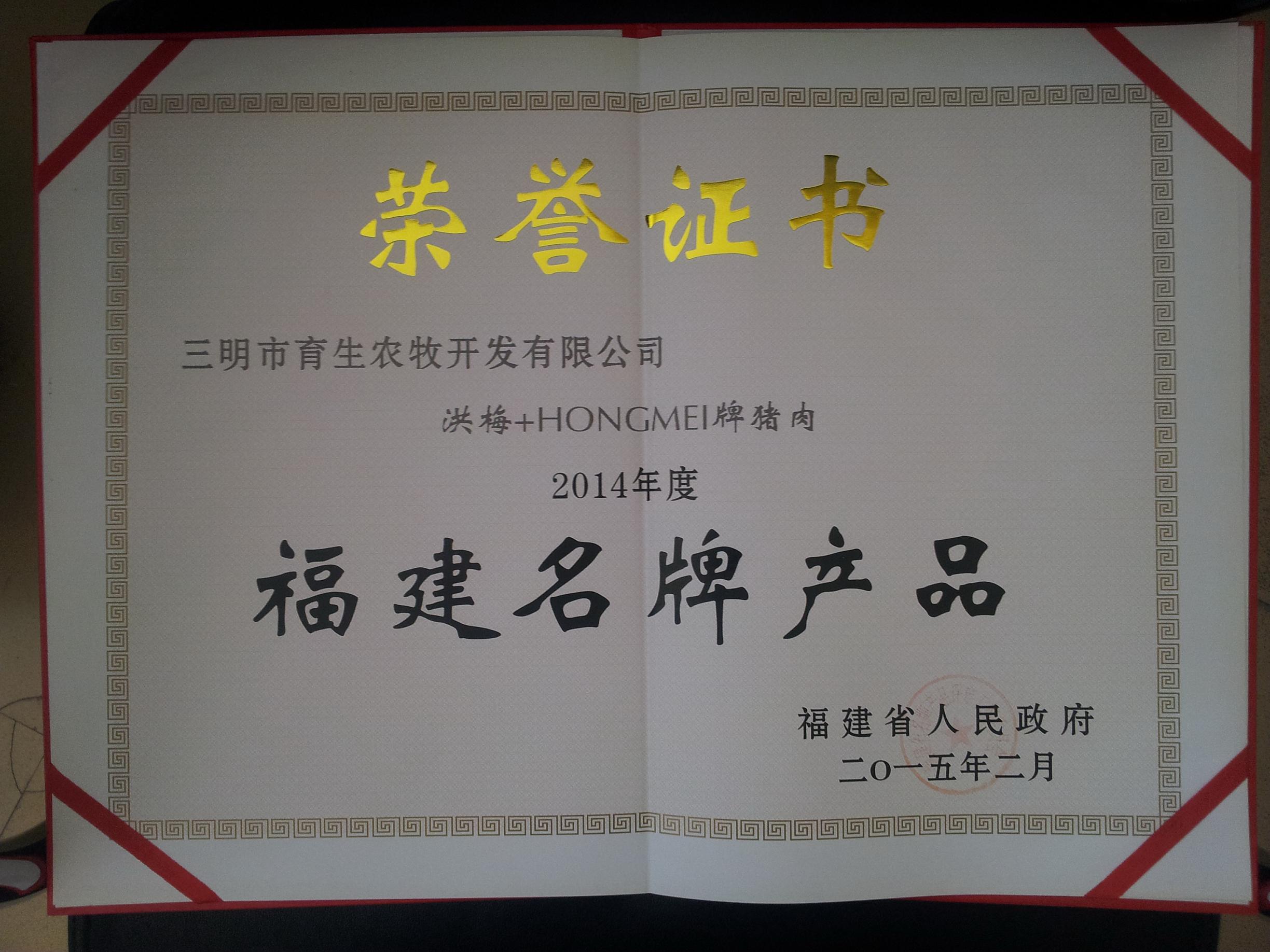 公司養(yǎng)殖基地養(yǎng)殖的豬肉榮獲“福建省名牌產品”稱號 4月1日,公司養(yǎng)殖基地——三明市育生農牧開發(fā)有限公司養(yǎng)殖的“洪梅+HONGMEI”牌豬肉被福建省人民政府評為“福建省名牌產品”稱號。